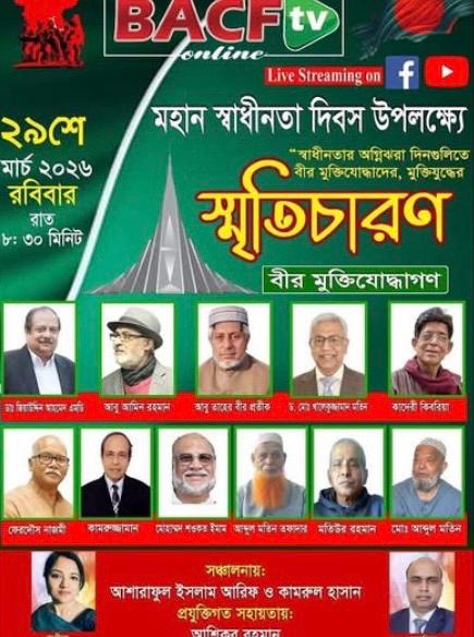 প্রতিবছর ২৬ মার্চ বাংলাদেশের স্বাধীনতা দিবস এলে দেশে যেমন তেমনি বিদেশে দেশান্তরে এই বিশেষ দিনের আনুপূর্বিক ইতিহাস বিভিন্ন অনুষ্ঠান আয়োজনের মধ্য দিয়ে উদযাপন করা হয়। এই ধারাবাহিকতায় ফিলাডেলফিয়ায় গত ২৯ মার্চ হয়ে গেল বিএসিএফ টিভির আয়োজনে মহান মুক্তিযোদ্ধাদের অংশগ্রহণে একটি বিশেষ আলেখ্য ও স্মৃতিচারণ অনুষ্ঠান।